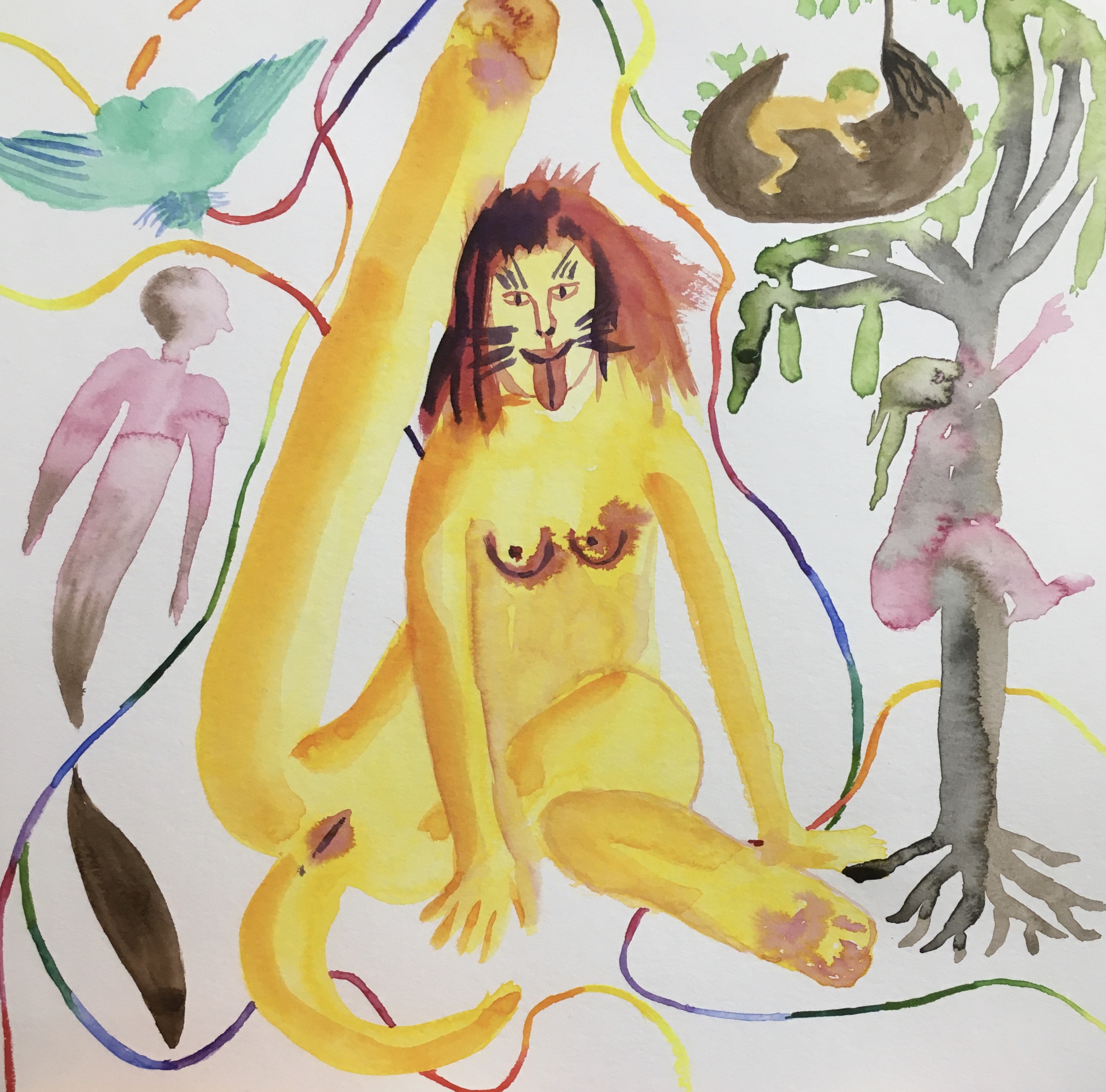 I have sewn various plant forms out of an old green jumper which will be incorporated into the sculpture somewhere and I made a boob out of plastic rubbish in a plastic bag, shaped and held together with masking tape and then painted with acrylic. It has wires coming out of the nipple which I have started to wind with paper and masking tape. They are to look like milk spurting out. I also started making a red woman puppet, but am not yet sure what I am going to do with her…