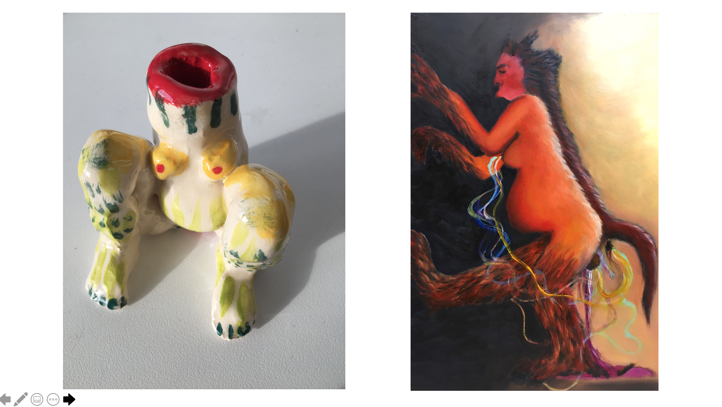 As you can see, I am working in lots of different media, performance to camera included. I play the comic stereotype of just this sort of deviant, animal-woman, celebrating good bacteria, bodily functions and pleasure, a kind of maenad who, though ridiculous, also embodies a longing for female bodily autonomy and a more sympathetic connection between human and non-human. I am also making a separation compost toilet, to demonstrate that we can become part of the earth processes which chthonic creatures perform. We can literally feed them.