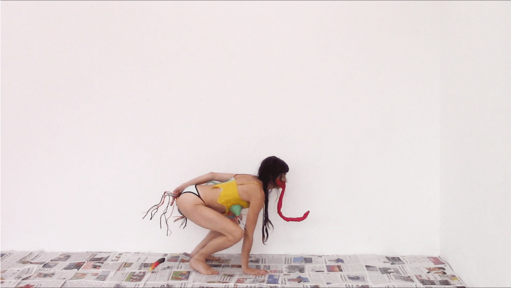 So for my degree show, I am trying to create a sort of vivid, chaotic world where the visceral animal-woman and her effluvia are raised up, into the censored, phobic, Apollonian realm. To celebrate the yuckiness of bodily and earthly processes, seething with bacteria and creatures who spread these nutrients which are essential for all life. We are always trying to seal ourselves away from this stuff, pretend we are above being animals, with concrete and tarmac, with flushing toilets and anti-bacterial sprays, so I want to literally raise a sculpture of a huge squatting woman above our heads. She represents the sort of deviant-beast-woman, the monstrous feminine, so censored by our culture and I am putting her into a position of worship, a kind of huge, seeping, goddess. Nilla mentioned this character Baubo to me – who turns out to be exactly what I’ve made it seems! She gets called the vulvanic goddess or goddess of obscenity. She’s sometimes an old woman, has no head and her vulva is her mouth. She tells dirty jokes and stories and made Demeter laugh when she was in misery searching for her lost daughter.