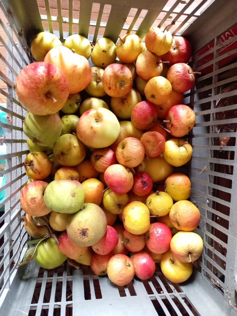 I grow tatties too, and I’m into fermenting and any kind of preserving that doesn’t involve a freezer as we don’t have enough electricity to run one. We have so many apples, I personally planted three different varieties, and there are several other kinds managed by other members of my family. Mine are all eating apples, Sunset, Discovery and one which I can’t remember the name of, so they are not supposed to store well. But I think they do pretty well in a cold room in trays. They gradually get a little soft and eventually wrinkly, but are still sweet and delicious in or on the side of pretty much any meal, I have decided. That’s what brought about the idea of writing down savoury apple recipes because I feel they are an underused and underrated resource. If I don’t get though them all, the ones that don’t go brown and soft (bruised or damaged ones) turn into apple raisins, I am calling them, though I haven’t decided what to do with them yet.