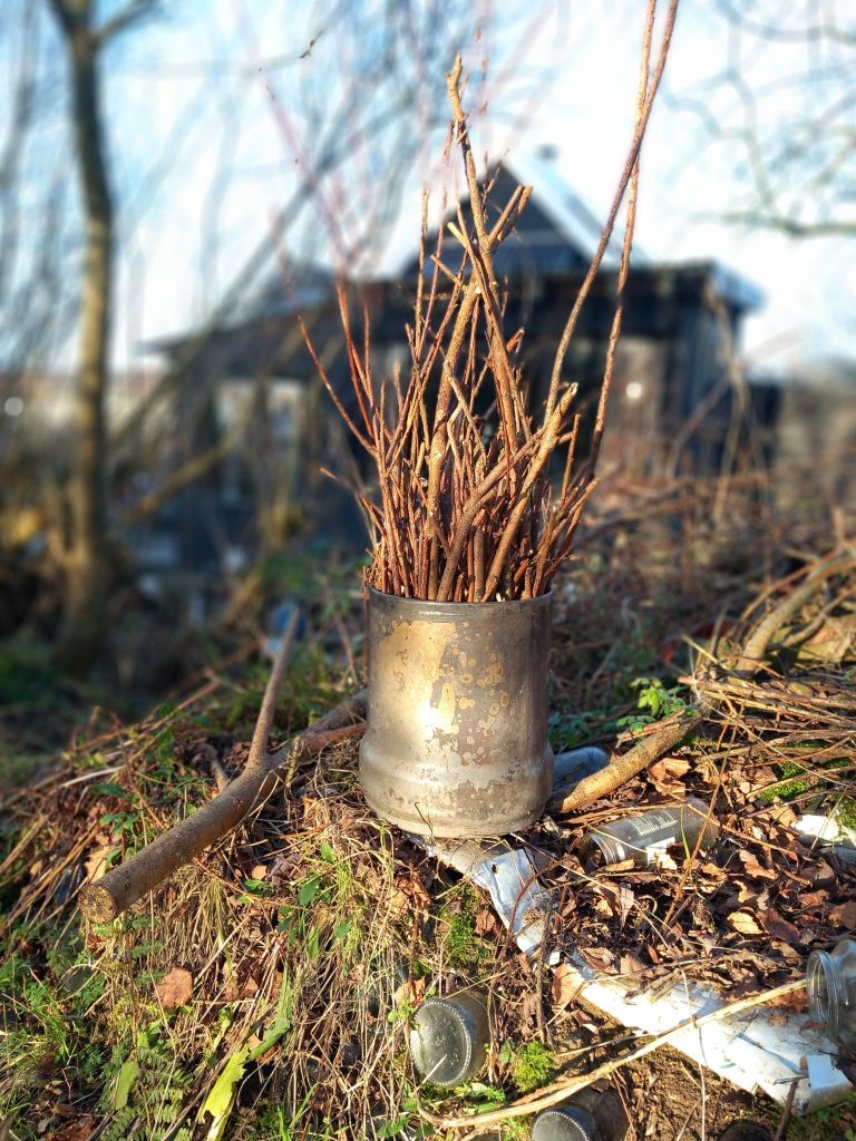 On the two beautifully sunny but incredibly short days that were the 20th of December and the 21st, winter solstice – the official shortest day of the year, I gathered kindling among other outside jobs. Throughout the year I cut back willow and other trees that need it, and pile the burnable branches to dry out, then break them up for kindling, sawing up the bigger branches and putting into longer, slower storage, semi-undercover, to season for firewood. I try to do it in an organised, systematic way, but it’s pretty haphazard, really. But it’s still a highly satisfying and therapeutic sort of job. Here is a pretty picture of some broken up branches in the low midwinter sunlight.